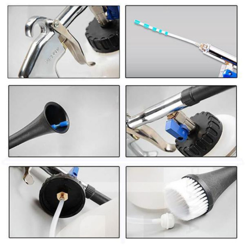 Dieser Hochdruckreiniger ermöglicht eine schnelle und effektive Reinigung des Innen- und Außenbereichs des Fahrzeugs. Seine konische Düse in Kombination mit einer rotierenden Aktion zielt auf eingedrungenen Schmutz ab. Kompatibel mit jedem Luftkompressor, erreicht er mühelos schwer zugängliche Bereiche.