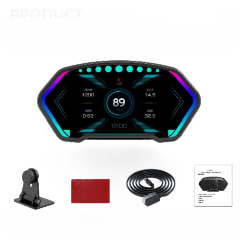 Cet afficheur numérique vous offre une lecture instantanée des informations essentielles pendant la conduite. Fixé directement sur le tableau de bord, il vous permet de surveiller votre vitesse, la tension de la batterie et d’autres données sans quitter la route des yeux. Son écran clair et son design compact s’intègrent parfaitement à l’intérieur de votre véhicule.